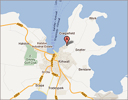 Stromness, take the A965 to Kirkwall (approximately 15 miles). Once into Kirkwall,